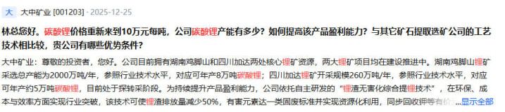随着碳酸锂价格攀升以及股价的持续走高,上市公司近一段时间也在互动平台密集回应投资者咨询。